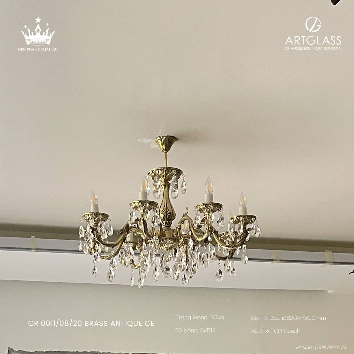 Đèn chùm đồng pha lê CR 0011-08-20 Brass Antique – Vẻ đẹp cổ điển đậm chất châu Âu