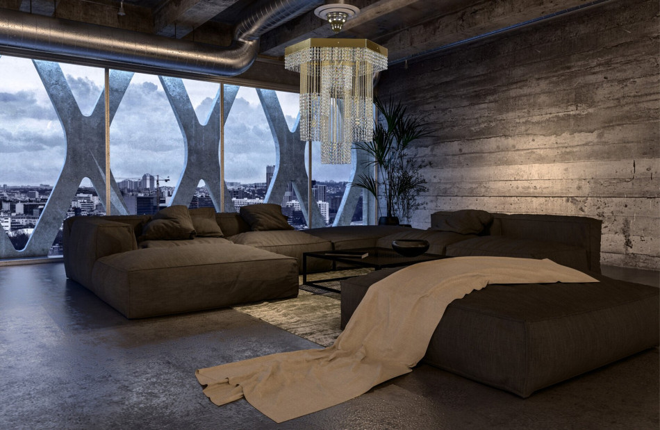 Ánh sáng đóng một vai trò rất quan trọng trong phong cách Industrial, và đèn chùm pha lê là một lựa chọn tuyệt vời cho vai trò này.