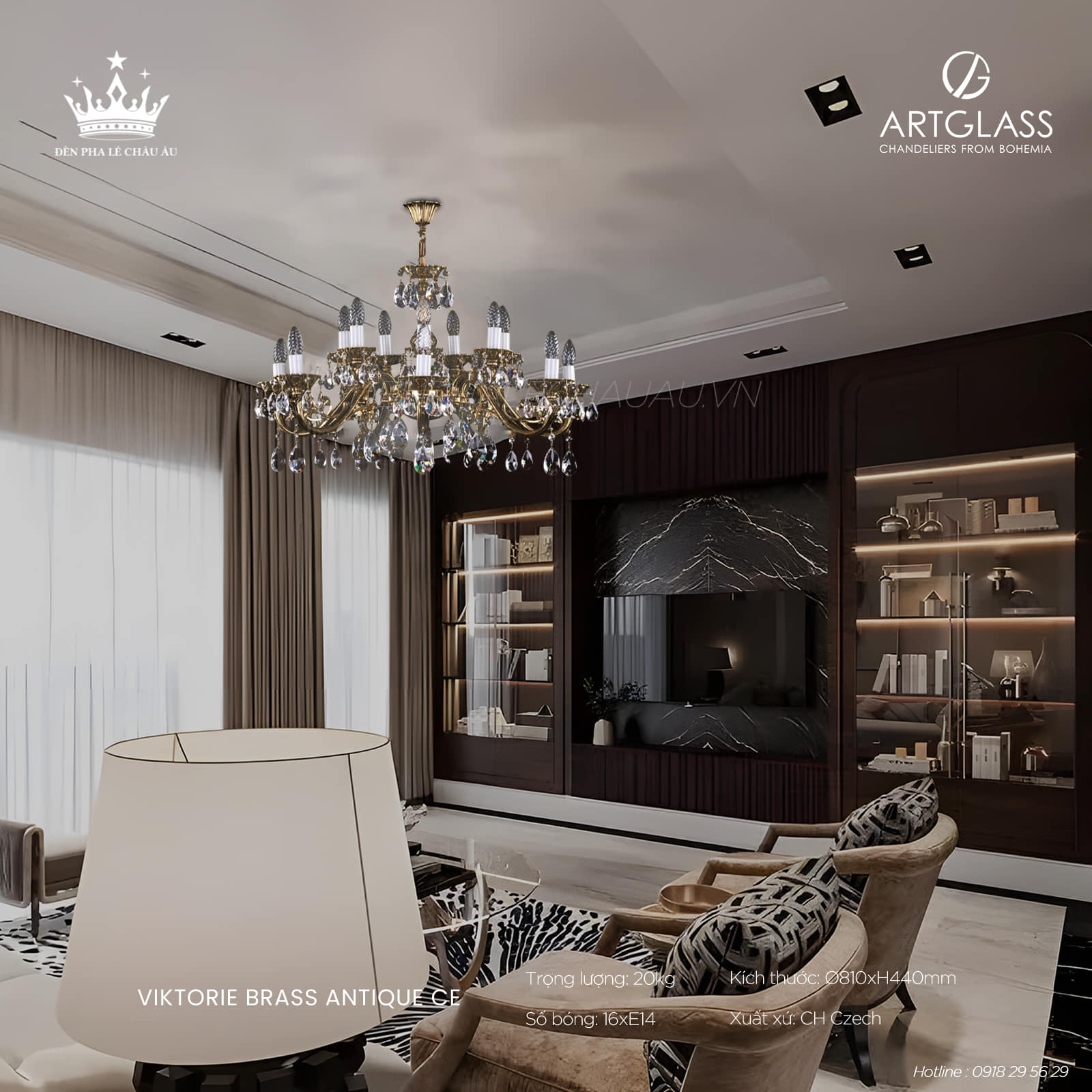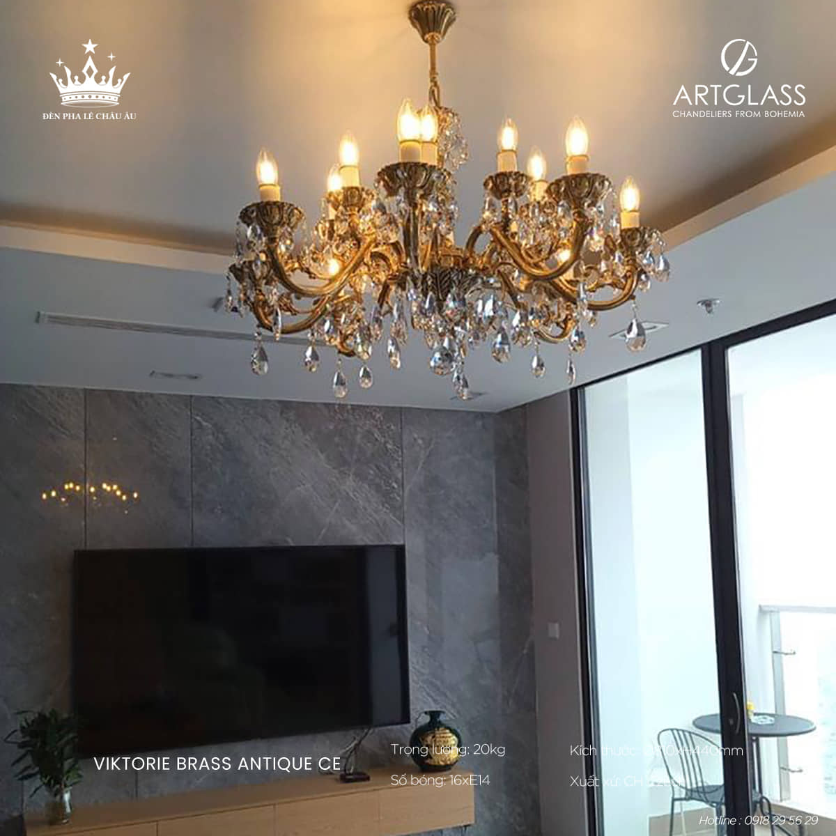 Đèn chùm pha lê cao cấp VIKTORIE BRASS ANTIQUE CE mang phong cách cổ điển sang trọng, lấy cảm hứng từ những lâu đài tráng lệ của Châu Âu. Với khung đồng brass antique bền chắc kết hợp cùng pha lê Crystal Exclusive lấp lánh, mẫu đèn thể hiện vẻ đẹp quyền quý và đẳng cấp của giới thượng lưu.