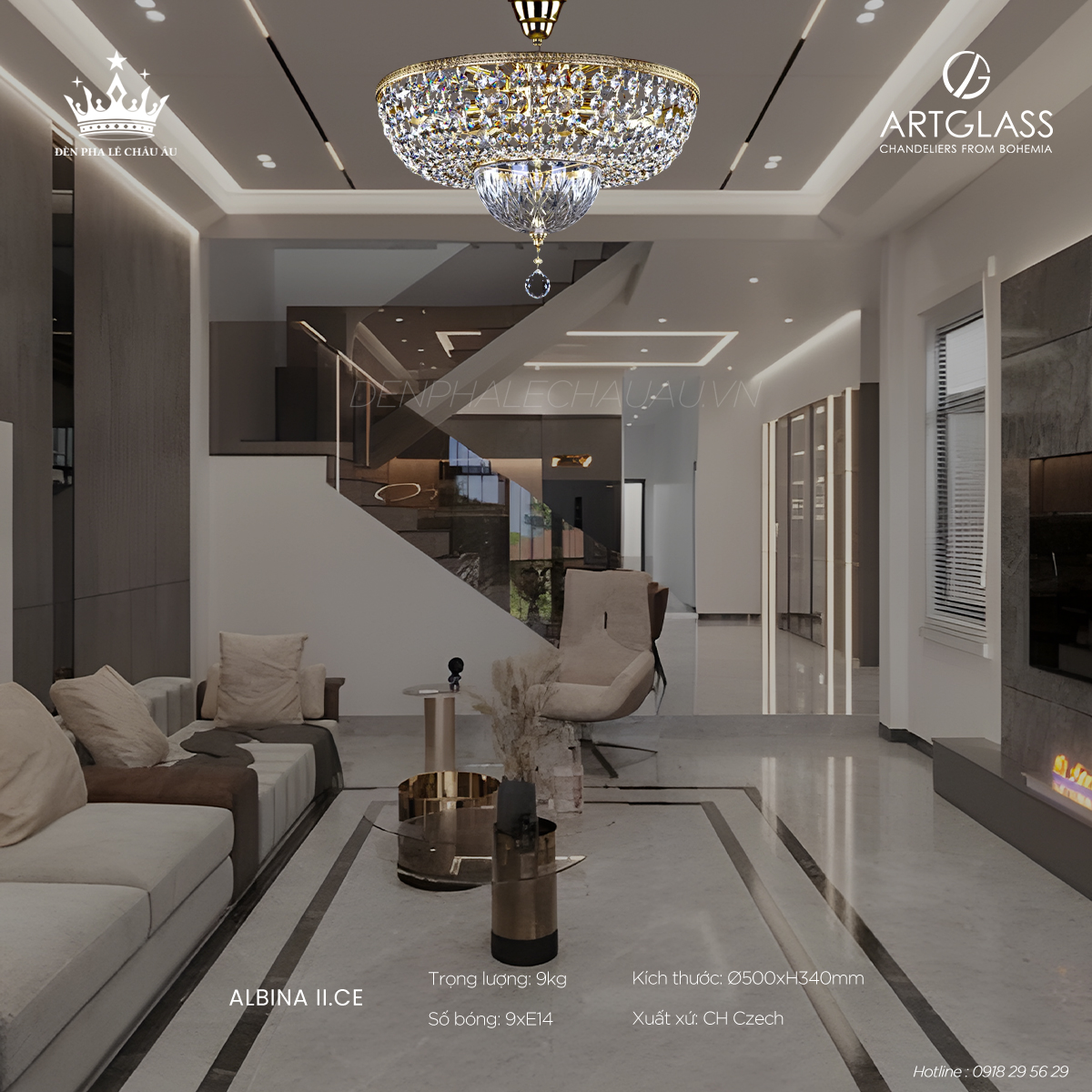 Đặc biệt, đèn pha lê Tiệp Khắc được đánh giá cao nhờ thiết kế chuẩn mực, cân đối và không lỗi thời, giúp không gian luôn giữ được giá trị thẩm mỹ lâu dài.