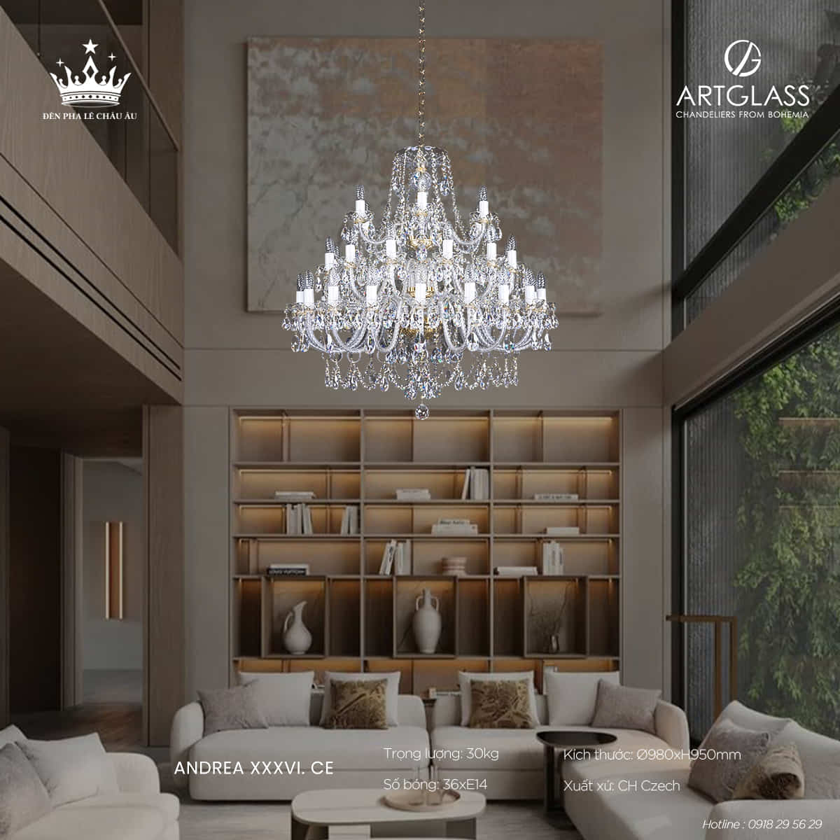 Chính vì vậy, ArtGlass đã phát triển nhiều phiên bản đèn Maria Theresa với kích thước và cấu trúc đa dạng, giúp chủ đầu tư dễ dàng lựa chọn giải pháp phù hợp cho từng công trình.