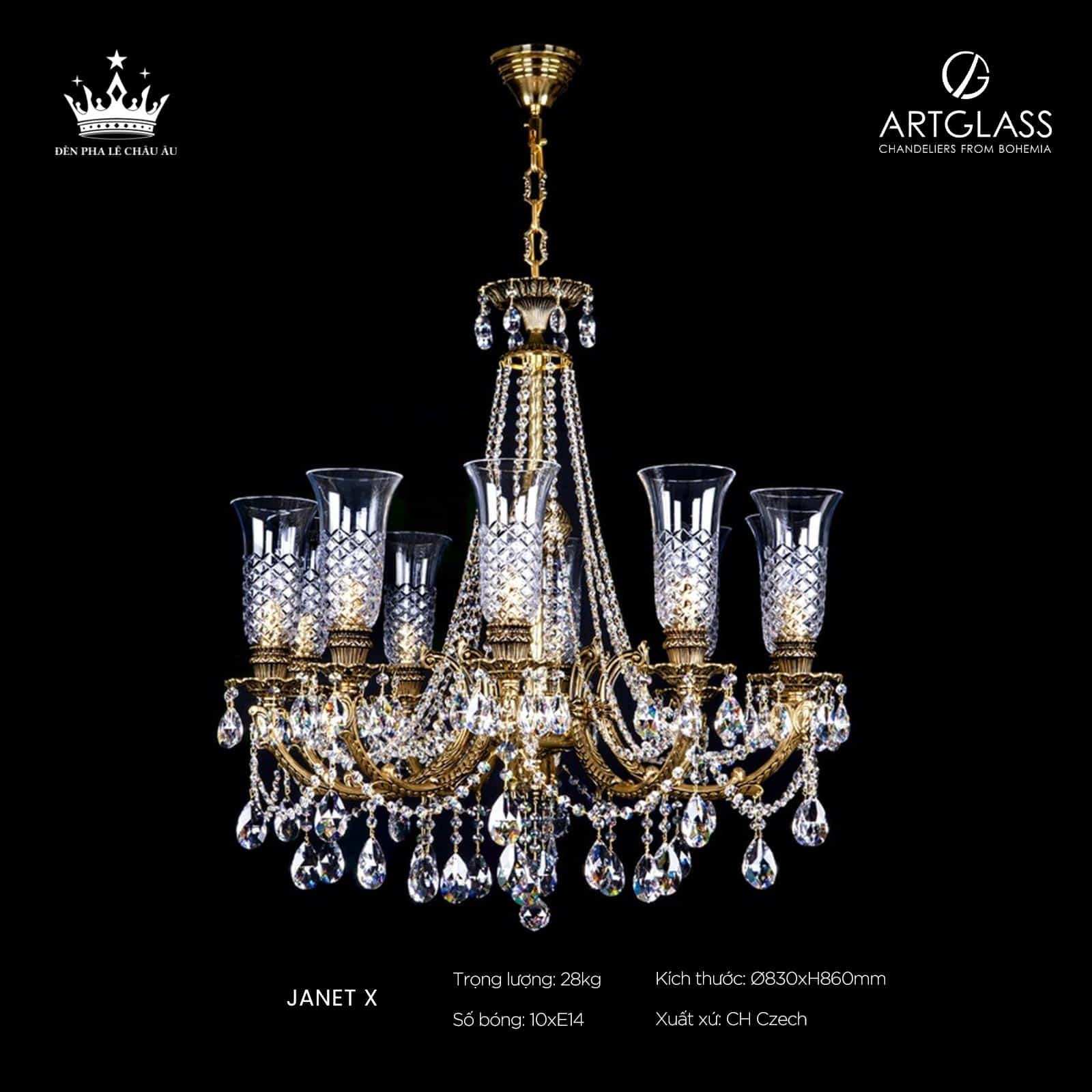 ArtGlass, thương hiệu đèn pha lê danh tiếng từ Cộng hòa Séc, nổi tiếng với nghệ thuật chế tác thủ công tinh xảo và thiết kế mang đậm phong cách châu Âu cổ điển. Được thành lập tại vùng Bohemia – thủ phủ pha lê Tiệp Khắc, ArtGlass kế thừa truyền thống hàng trăm năm trong việc sáng tạo những kiệt tác ánh sáng tầm cỡ quốc tế.