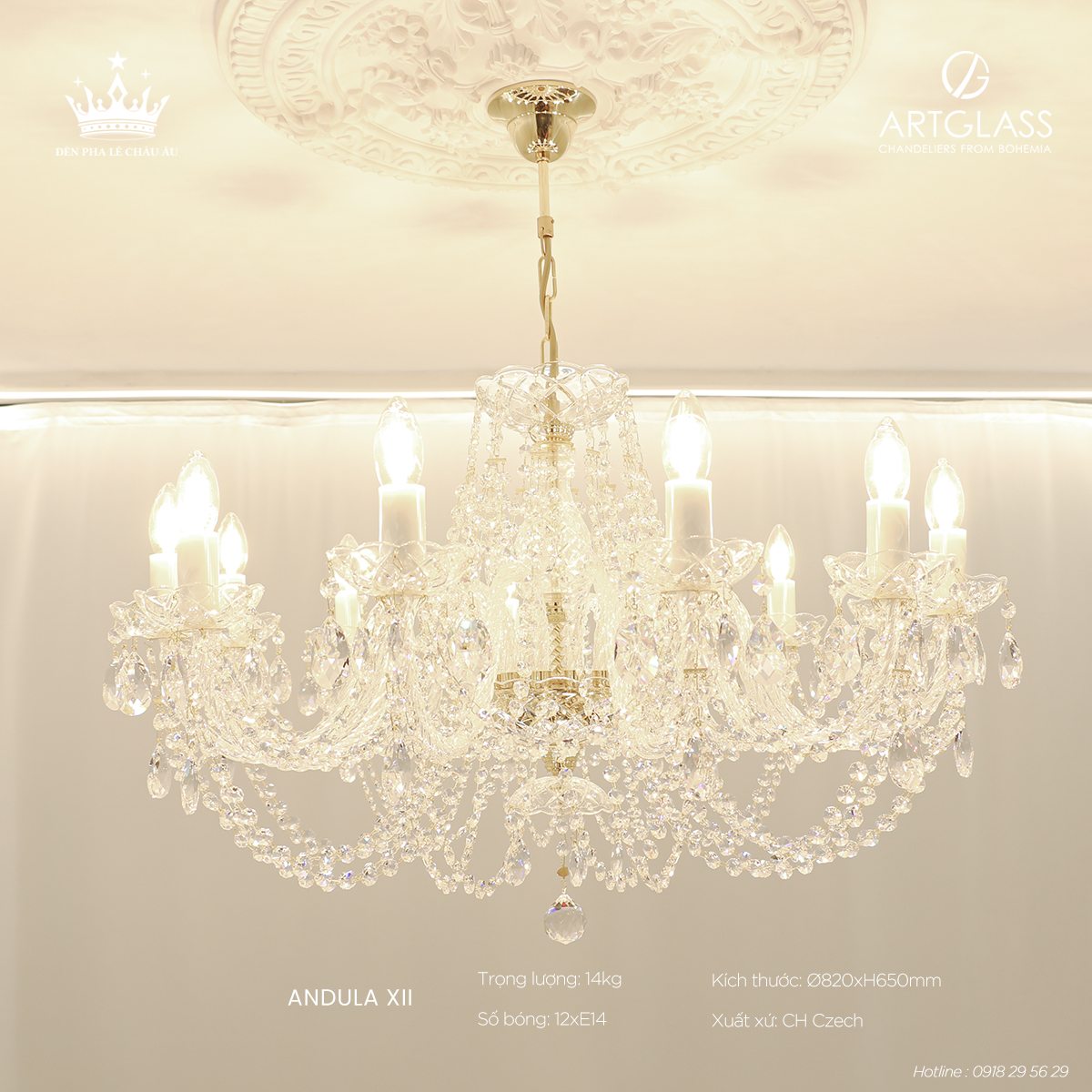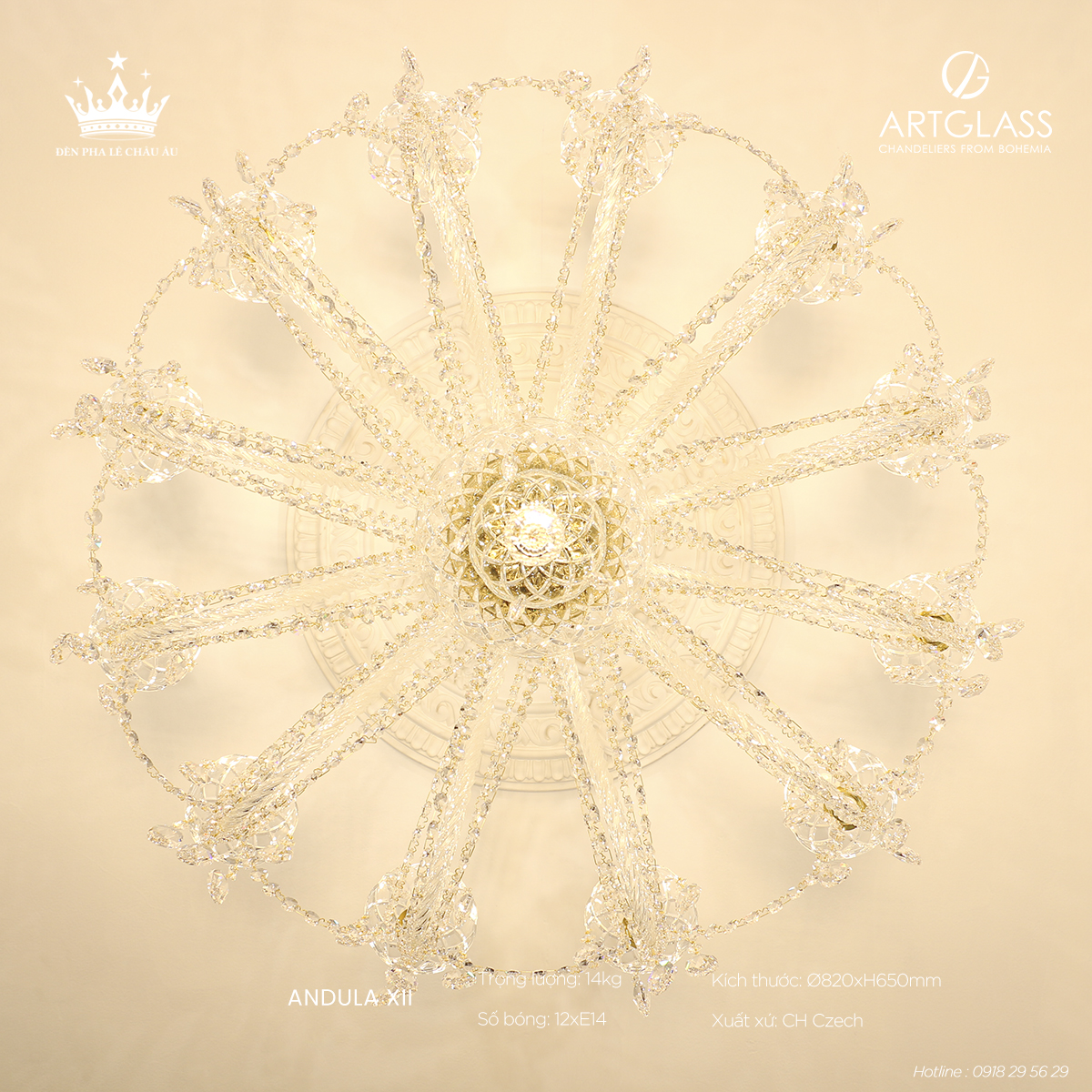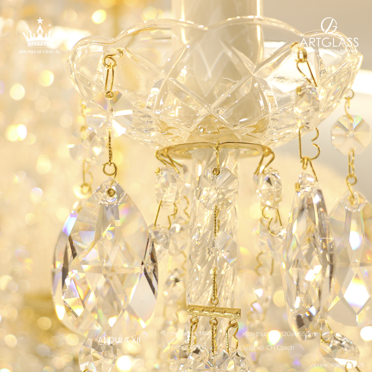 Chất liệu đẳng cấp: Pha lê cao cấp đảm bảo độ bền lâu dài và vẻ đẹp sang trọng vượt trội, mang hơi thở châu Âu tinh tế, hoàn hảo cho những ai tìm kiếm giải pháp chiếu sáng vừa thẩm mỹ vừa hiện đại.