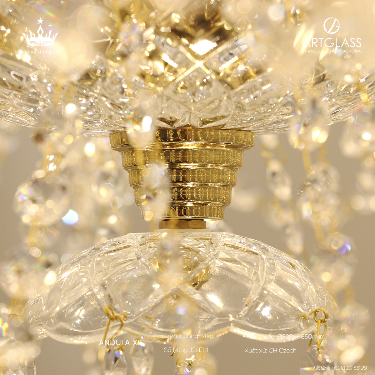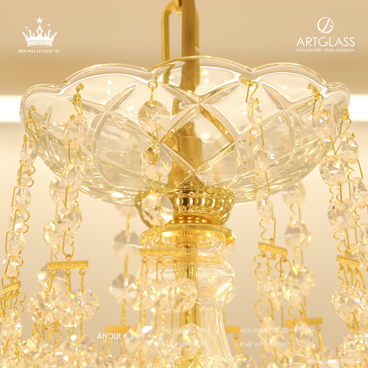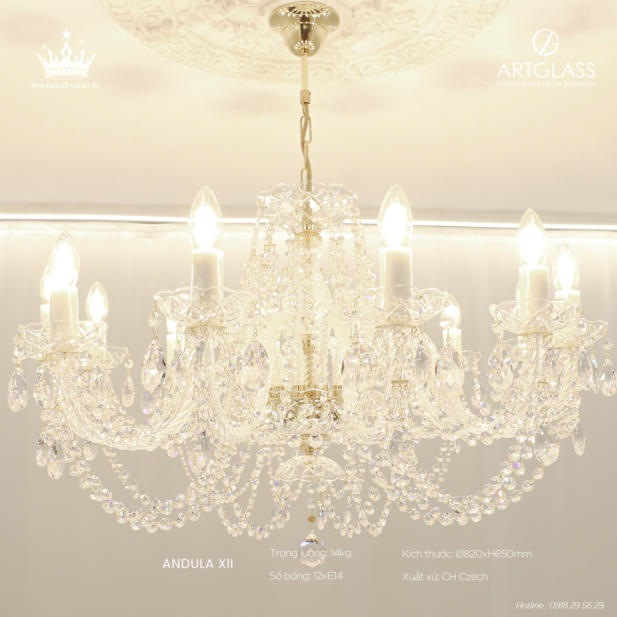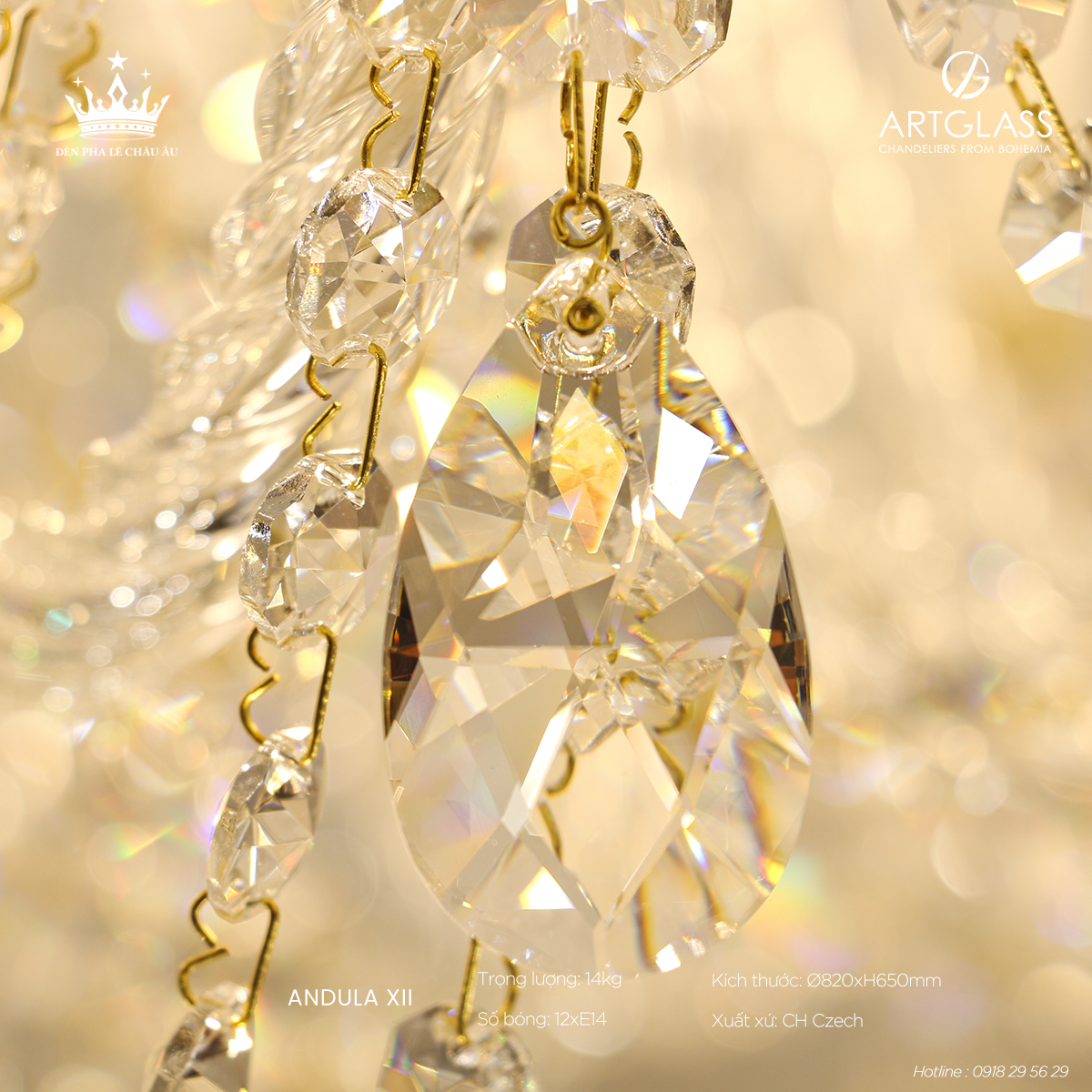Chất liệu đẳng cấp: Pha lê cao cấp đảm bảo độ bền lâu dài và vẻ đẹp sang trọng vượt trội, mang hơi thở châu Âu tinh tế, hoàn hảo cho những ai tìm kiếm giải pháp chiếu sáng vừa thẩm mỹ vừa hiện đại.