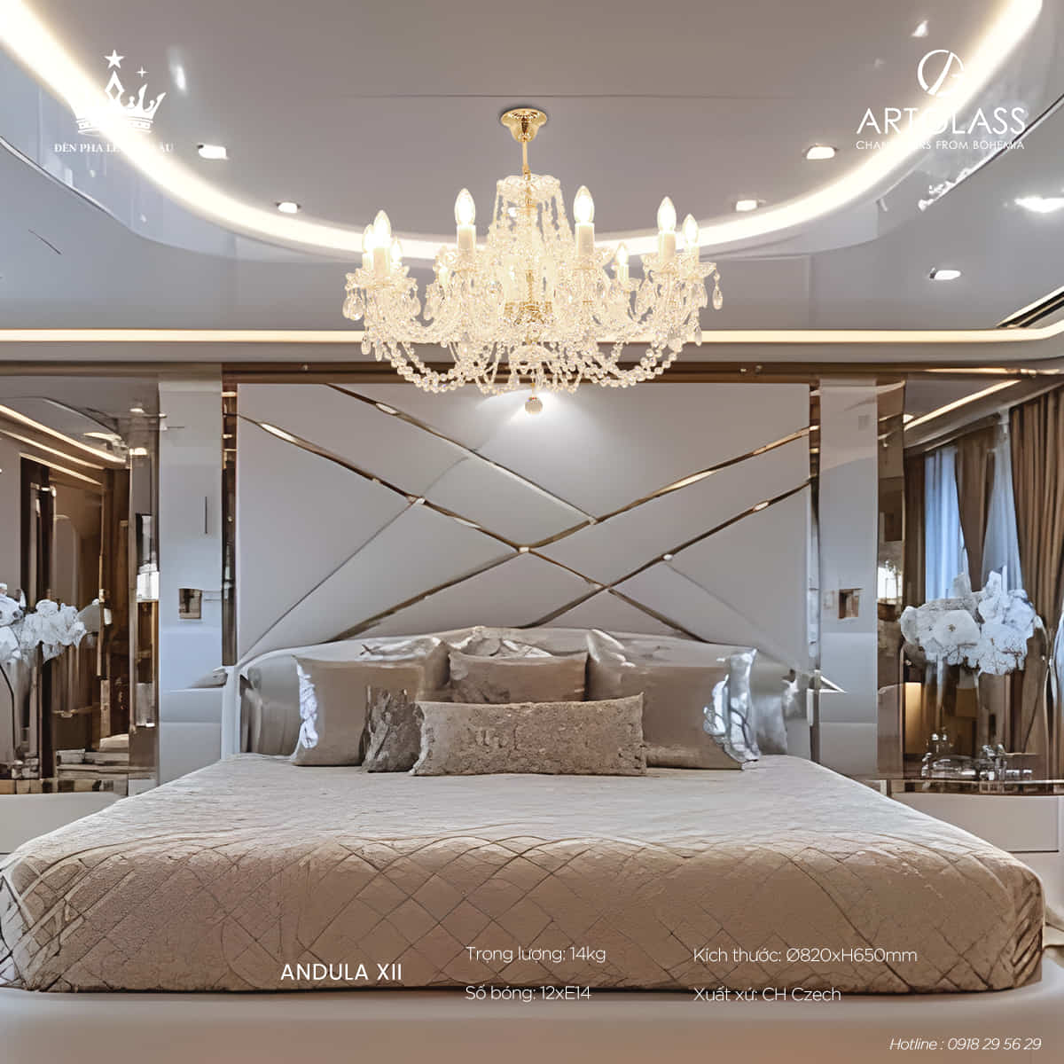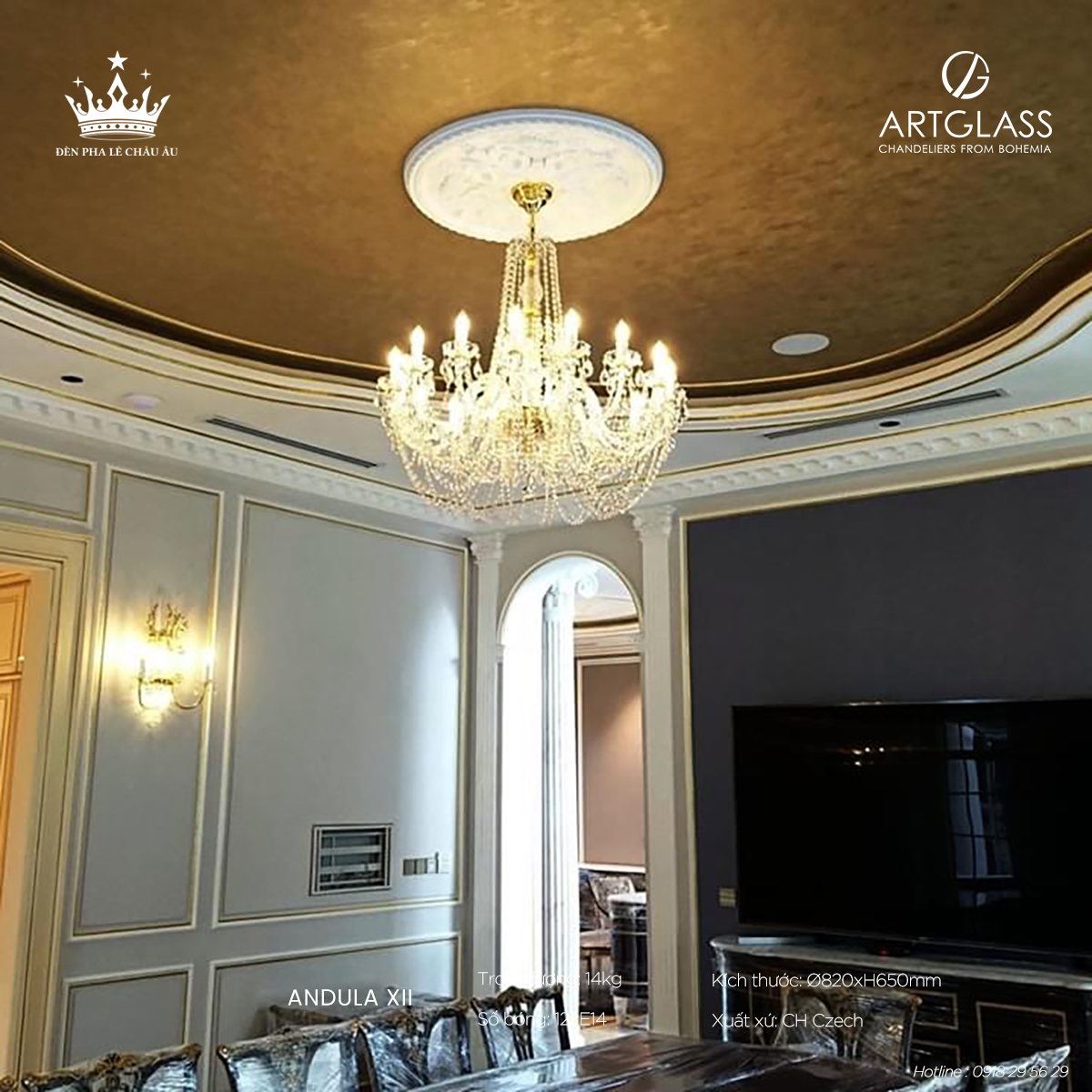 Lý tưởng cho không gian: Andula XII S-A 288 phù hợp với nhiều không gian nội thất cao cấp, từ phòng khách, phòng ăn cho tới sảnh lớn. Sự hiện diện của ánh sáng pha lê lung linh tạo điểm nhấn nghệ thuật, nâng tầm không gian sống và gắn kết các khoảnh khắc gia đình.