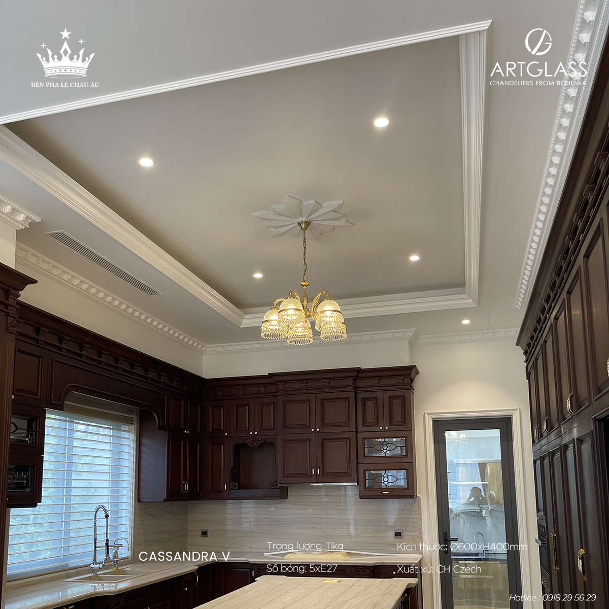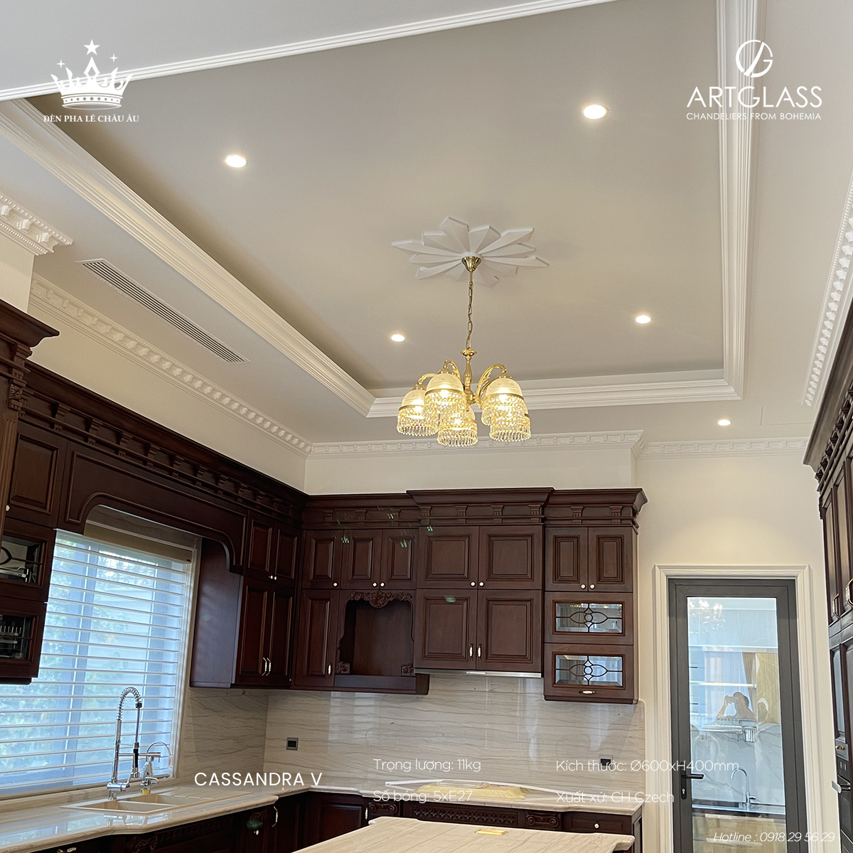 Đèn Đồng Pha Lê Cassandra V là lựa chọn hoàn hảo và không thể thiếu cho phòng ăn và phòng khách – những không gian thiêng liêng để gắn kết gia đình và đón tiếp những vị khách quý. Với khả năng tạo ra ánh sáng dịu nhẹ, ấm áp từ bóng đèn E27/E14 chất lượng cao, cùng với sự kết hợp tuyệt vời giữa pha lê tinh xảo và khung đồng thau nguyên khối, sản phẩm không chỉ nâng tầm thẩm mỹ không gian mà còn tạo nên bầu không khí ấm cúng, sang trọng và đầy ấn tượng.