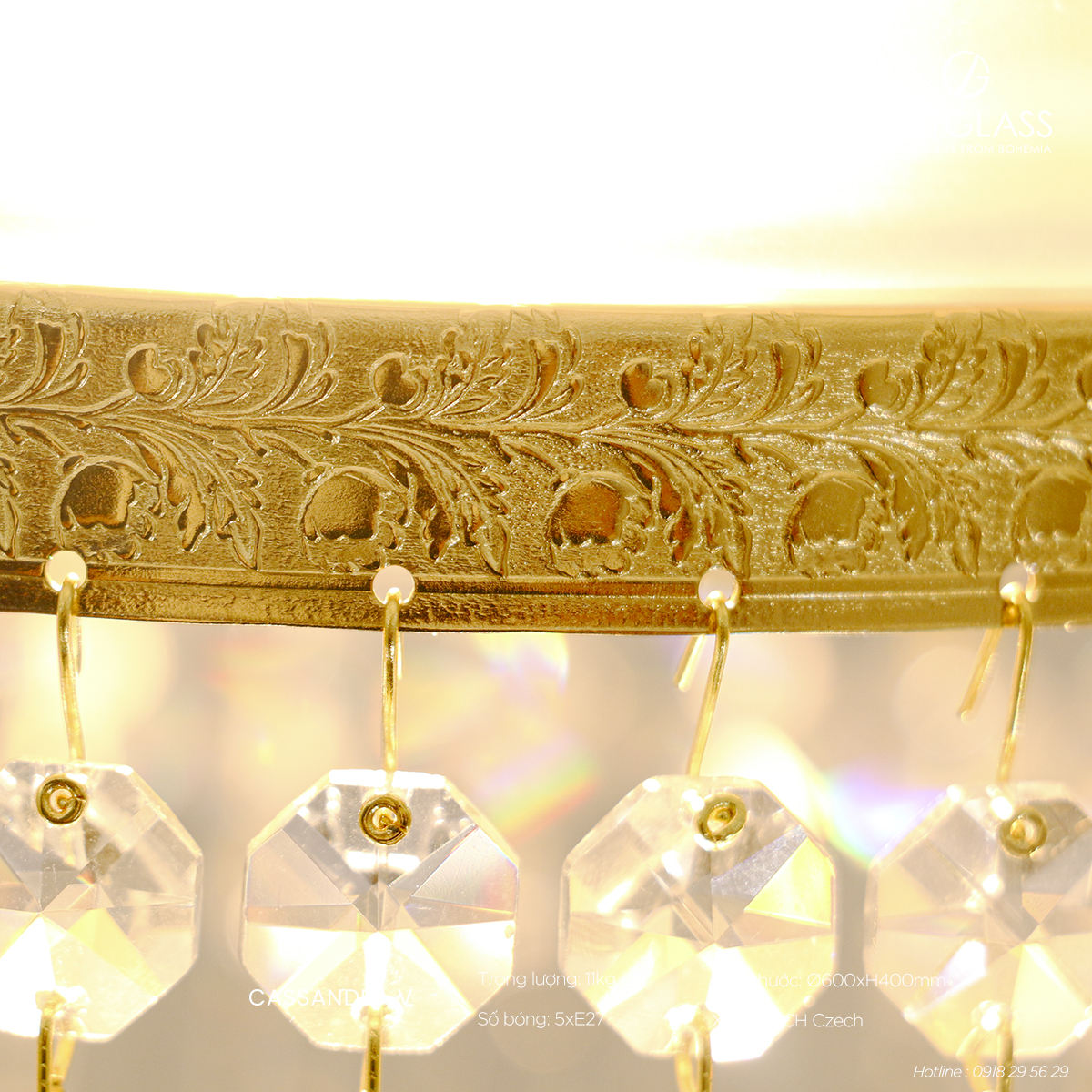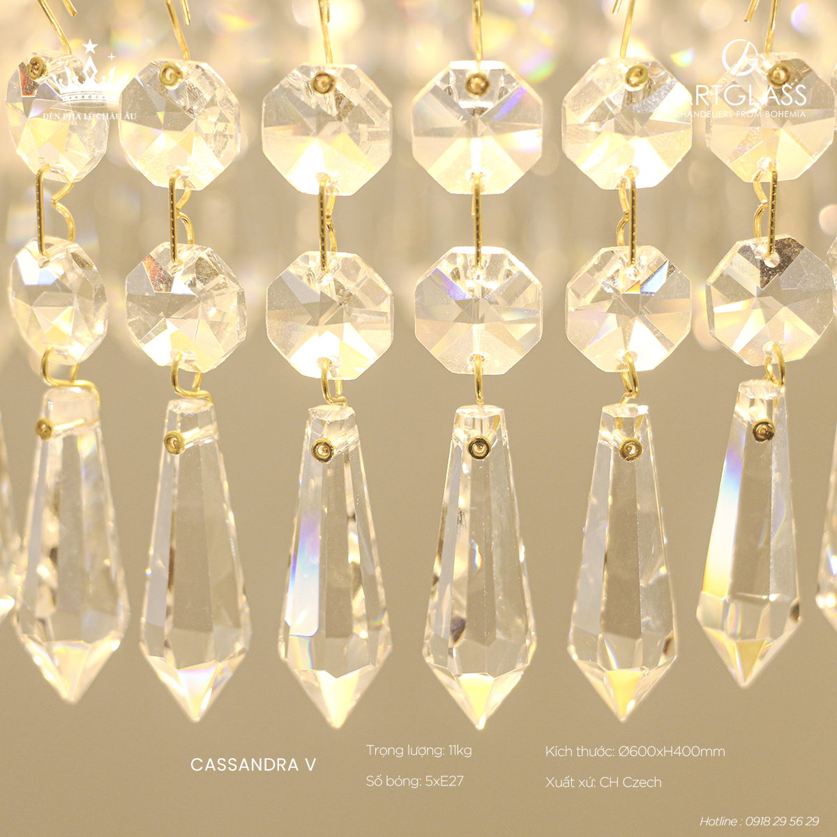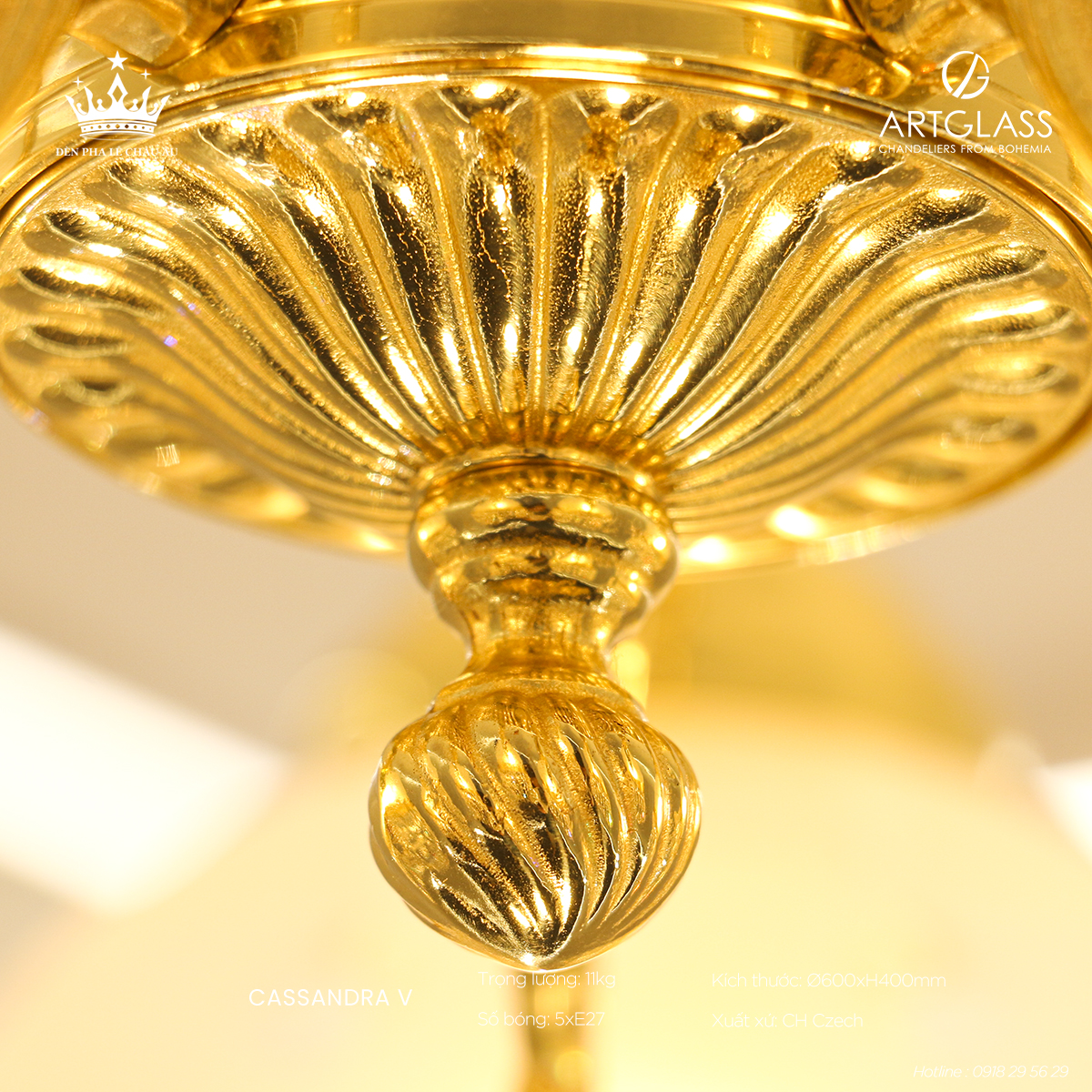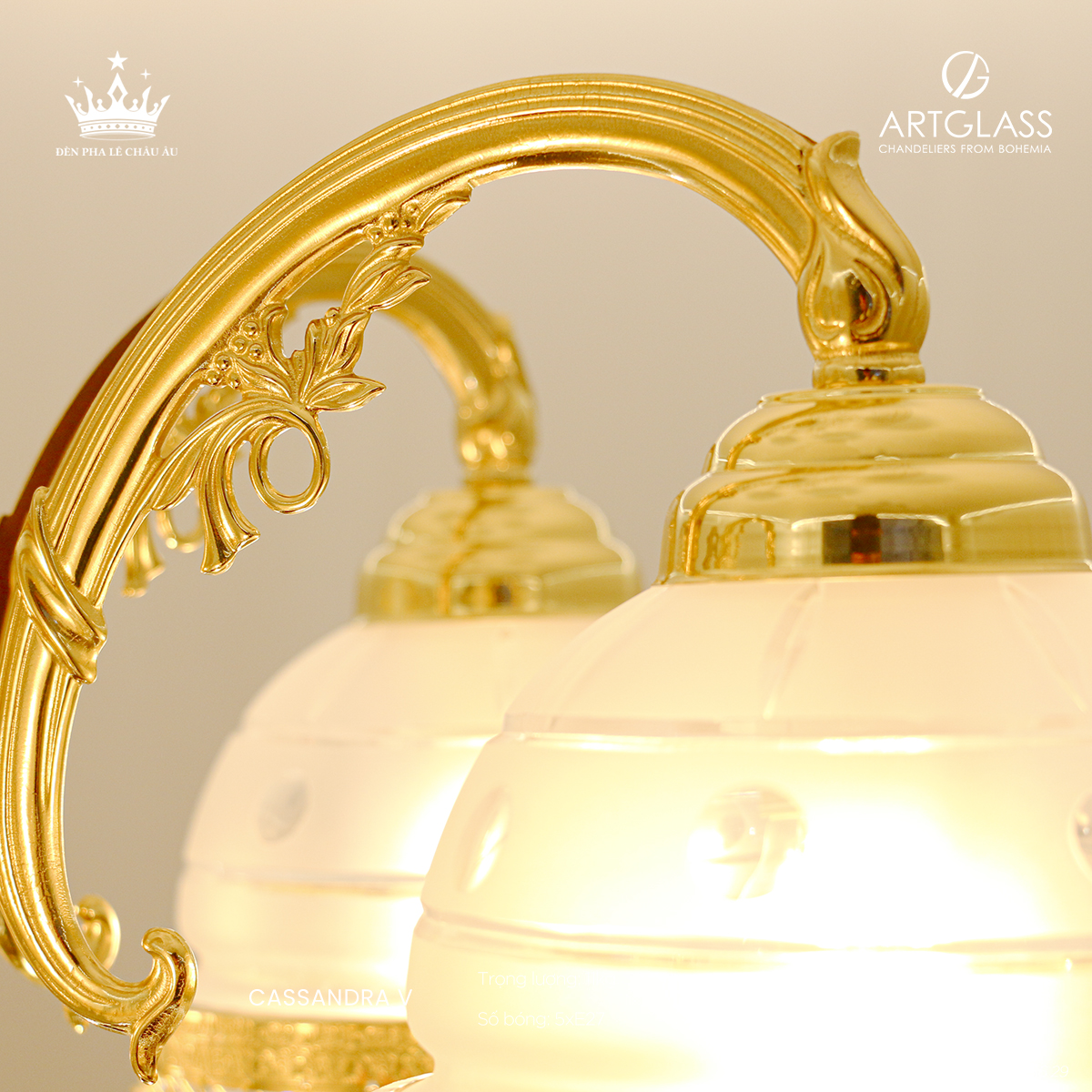 Đèn Đồng Pha Lê CASSANDRA V – kiệt tác nghệ thuật đỉnh cao từ thương hiệu danh tiếng ArtGlass, một hãng sản xuất pha lê hàng đầu có lịch sử lâu đời tại vùng đất pha lê Cộng hòa Séc. Là một trong những tác phẩm xuất sắc thuộc bộ sưu tập đẳng cấp "Cassandra", sản phẩm được chế tác công phu từ đồng thau nguyên khối kết hợp cùng pha lê cao cấp, toát lên vẻ đẹp tinh xảo, sang trọng và độ bền vượt thời gian.
