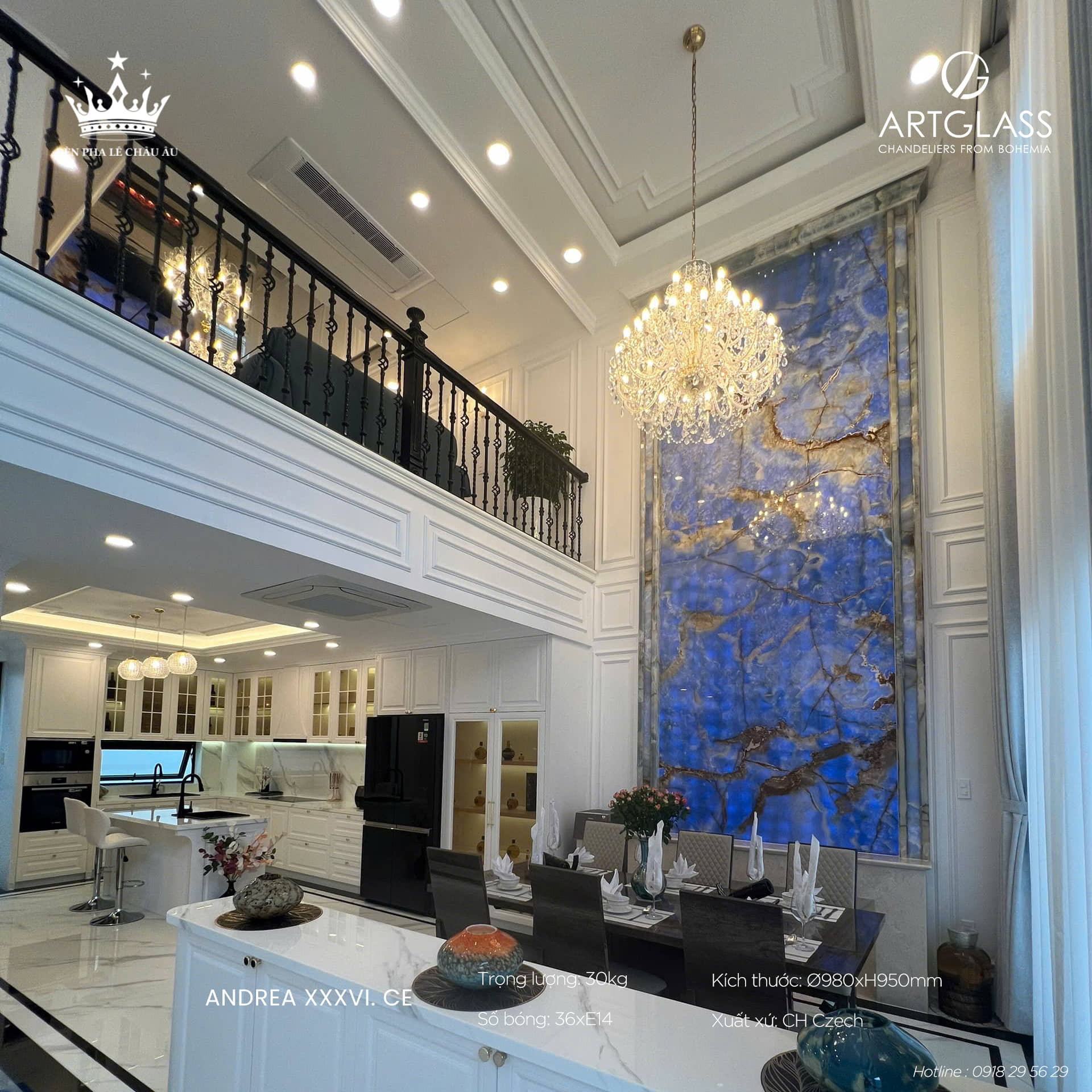 Tên gọi ANDREA không đơn thuần là một cái tên – mà là một biểu tượng. Một nữ hoàng lộng lẫy trong đại sảnh lâu đài cổ châu Âu, đứng giữa muôn ngàn ngọn nến lấp lánh, vừa thanh lịch vừa toát lên nội lực mạnh mẽ. Chính nguồn cảm hứng ấy đã thổi hồn vào đội ngũ thiết kế tại ArtGlass để tạo nên một mẫu đèn chùm không chỉ đẹp, mà còn mang đậm cá tính.
