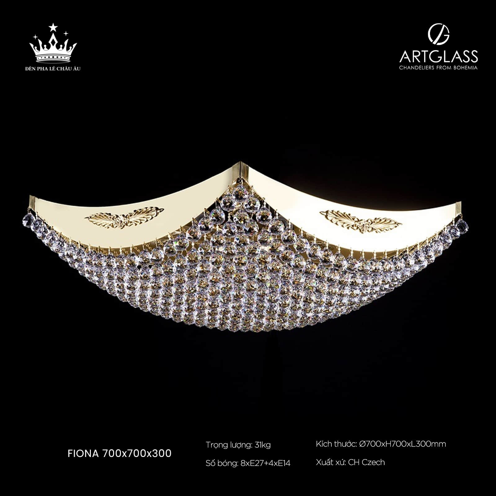Đèn pha lê ốp trần FIONA 700x700 là dòng sản phẩm trang trí cao cấp thuộc thương hiệu ArtGlass, nổi bật với thiết kế hình vuông độc đáo và kiểu dáng sang trọng. Sản phẩm được chế tác từ pha lê cao cấp kết hợp cùng khung kim loại chắc chắn, mang lại vẻ đẹp lấp lánh và bền bỉ theo thời gian.