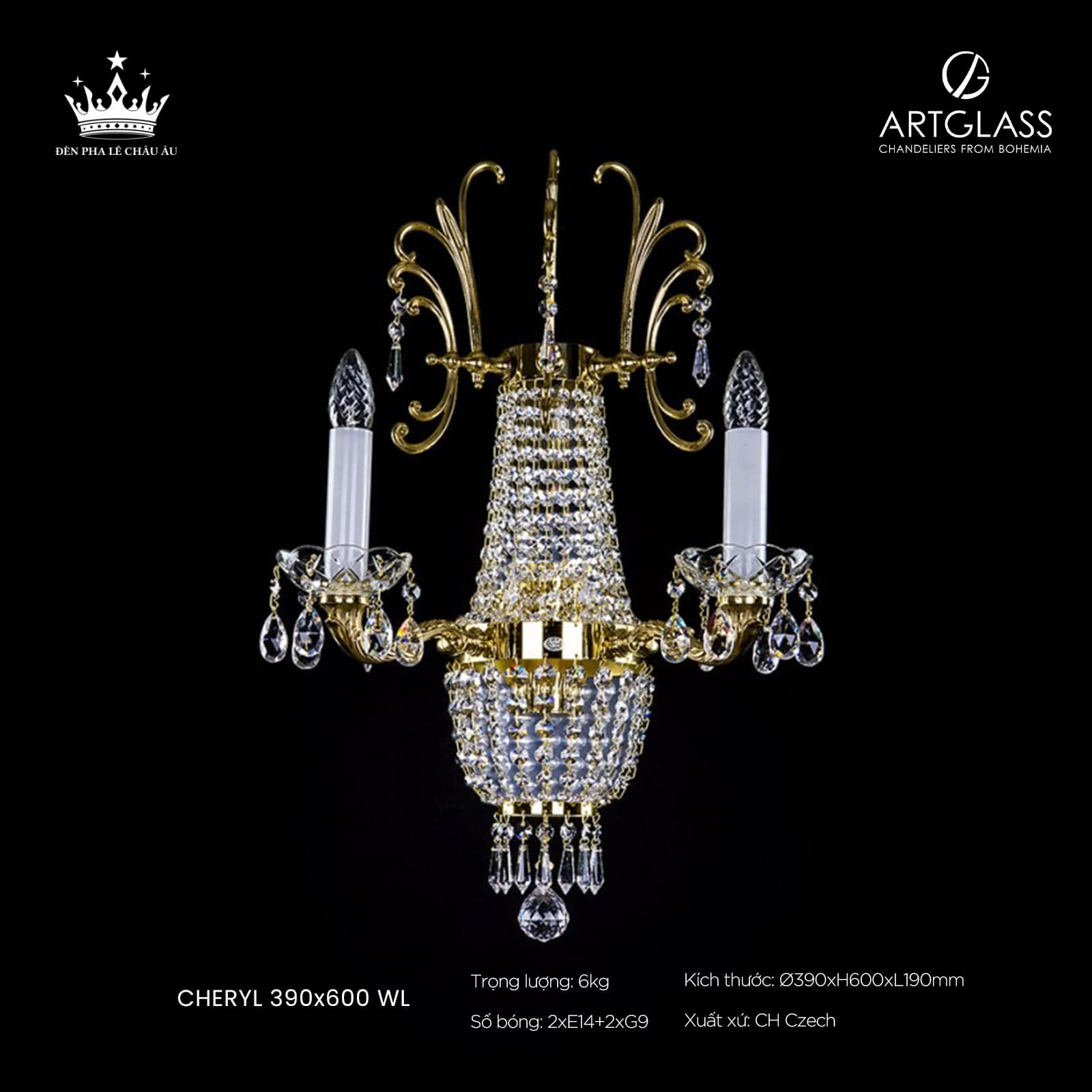 Đèn ốp tường CHERYL 390x600 WL là lựa chọn hoàn hảo cho những không gian nội thất cao cấp, mang đến vẻ đẹp hiện đại, tinh tế nhưng vẫn giữ được sự sang trọng đẳng cấp. Sản phẩm được chế tác tỉ mỉ từ pha lê cao cấp kết hợp cùng khung kim loại chắc chắn, tạo nên ánh sáng lung linh và bền bỉ theo thời gian.