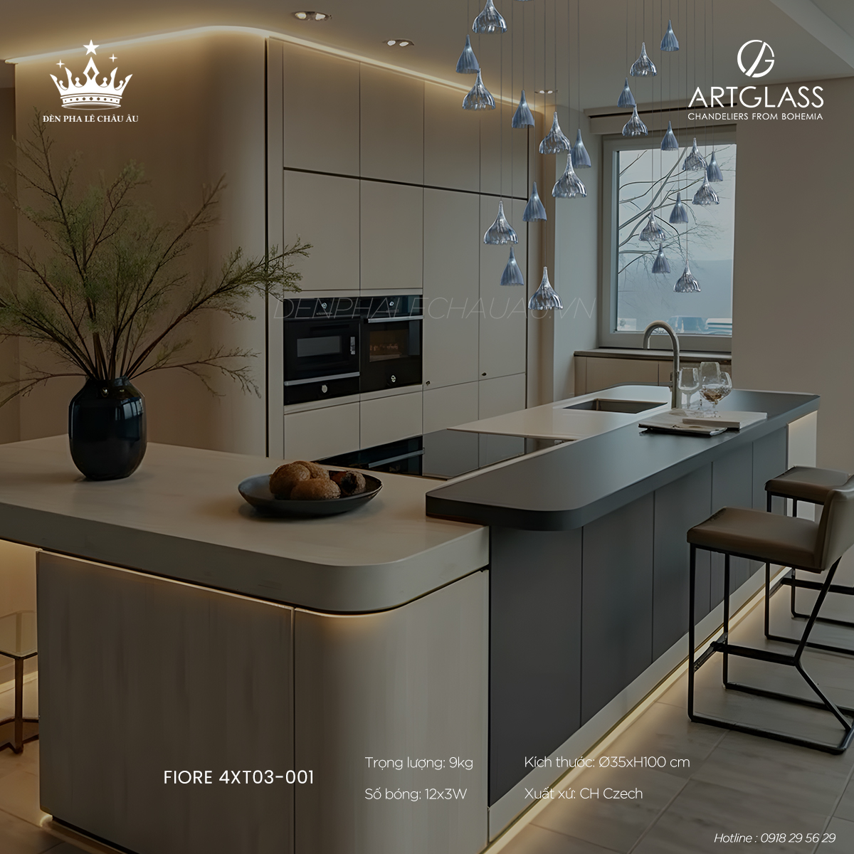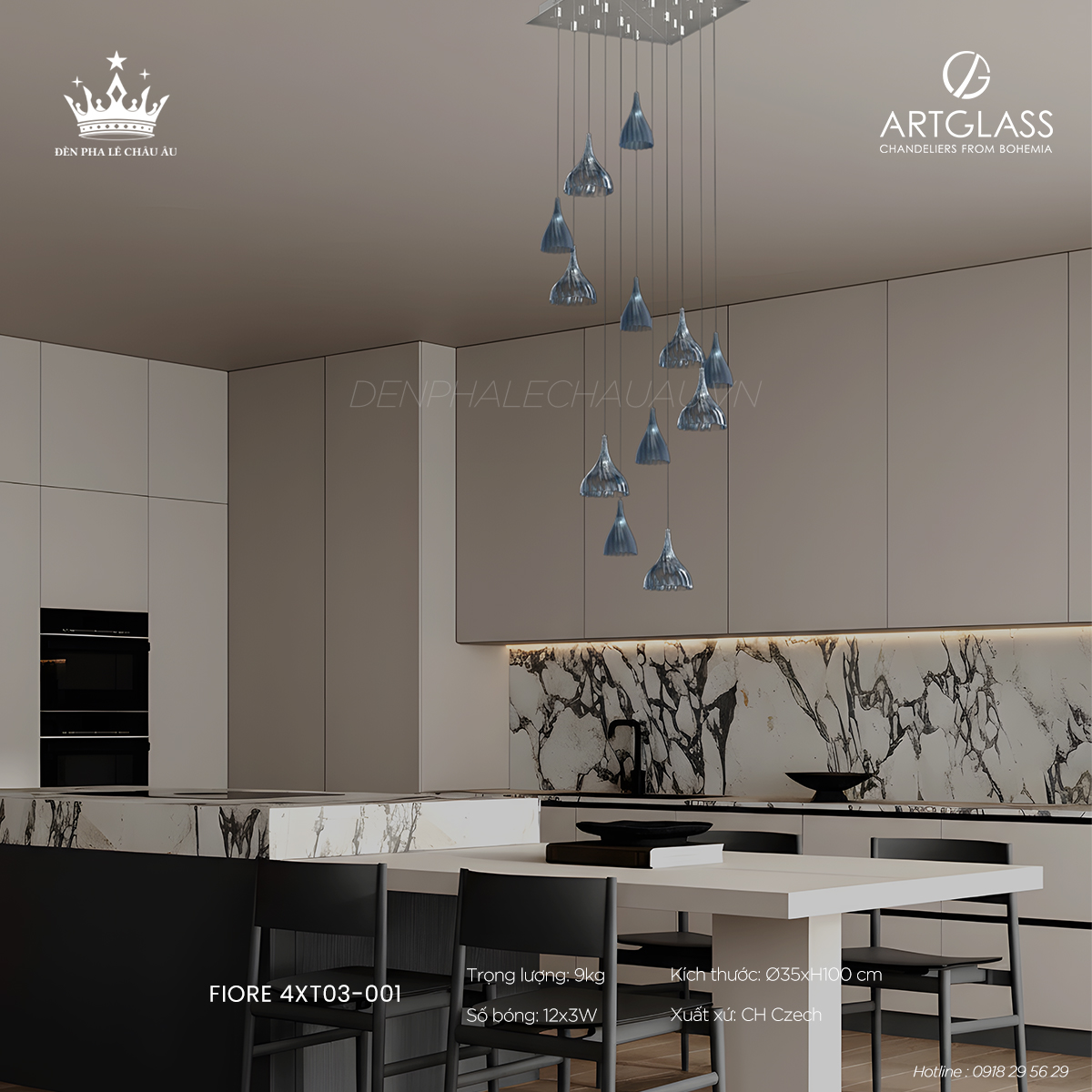 Dòng đèn này được ghi dấu bằng chất liệu pha lê chuẩn mực, ánh sáng được tính toán kỹ lưỡng và tinh thần thẩm mỹ châu Âu đương đại, phù hợp cho những không gian hướng đến giá trị lâu dài.